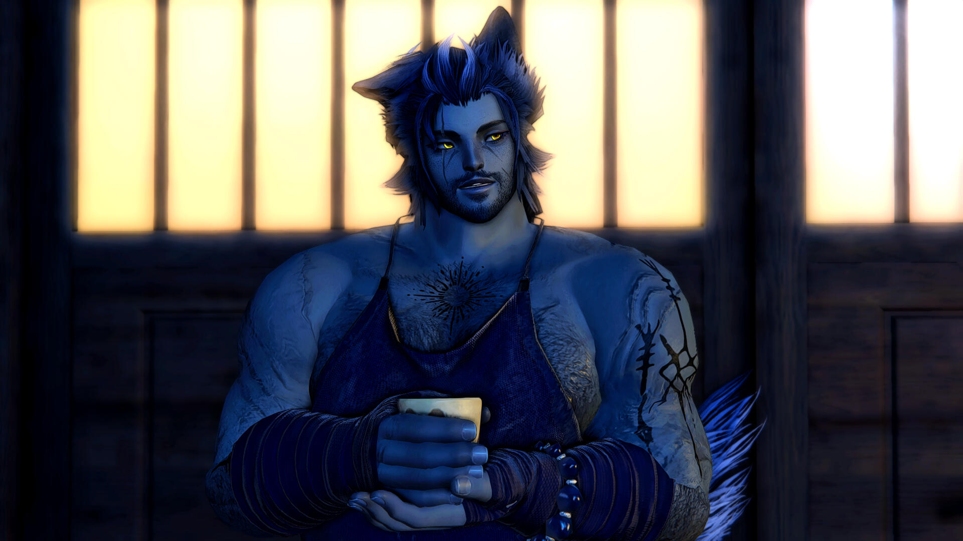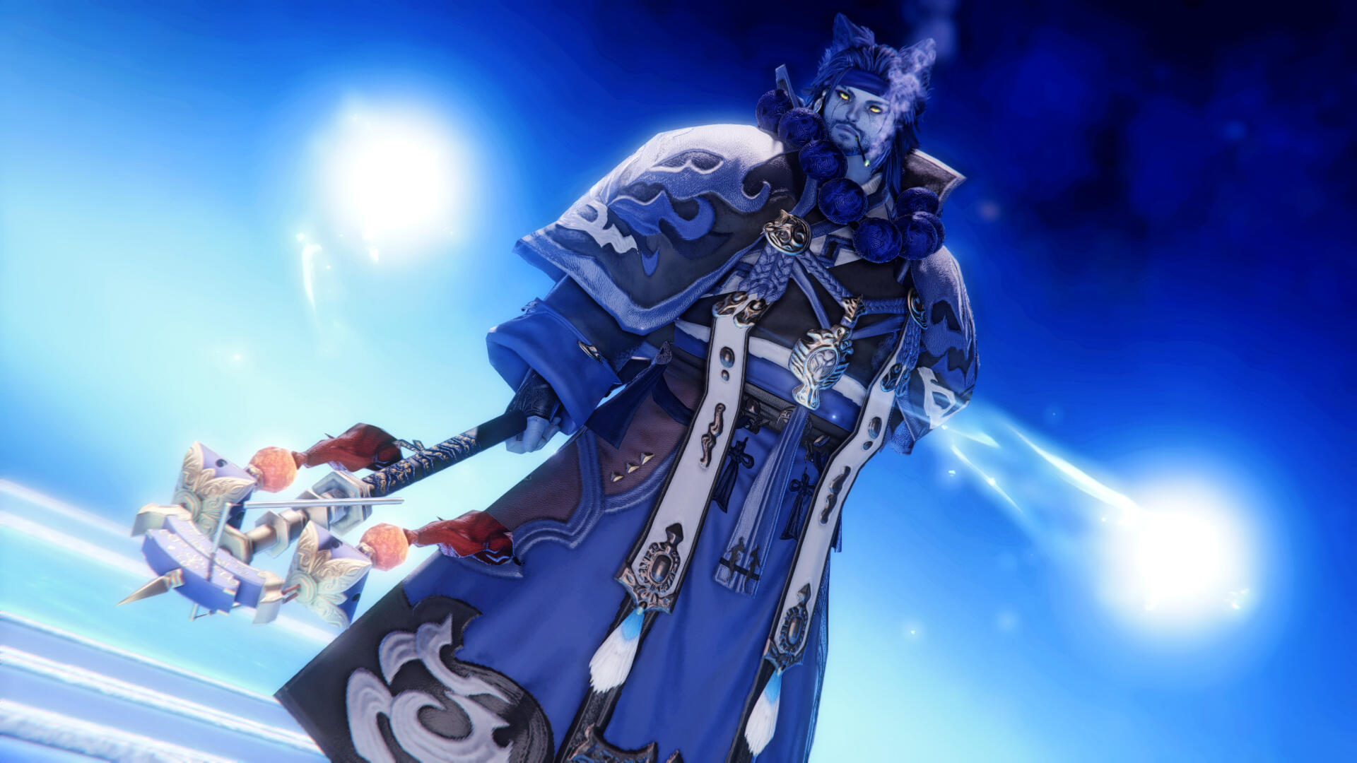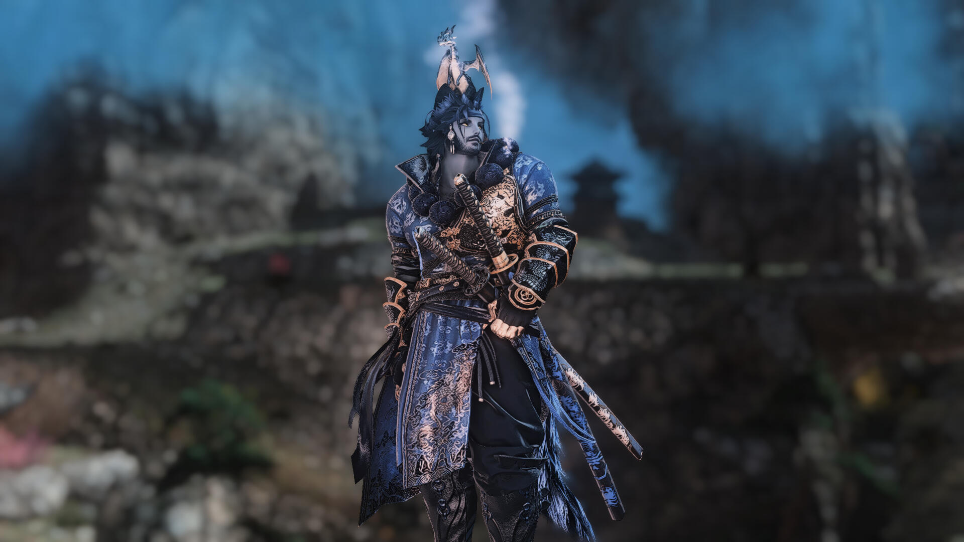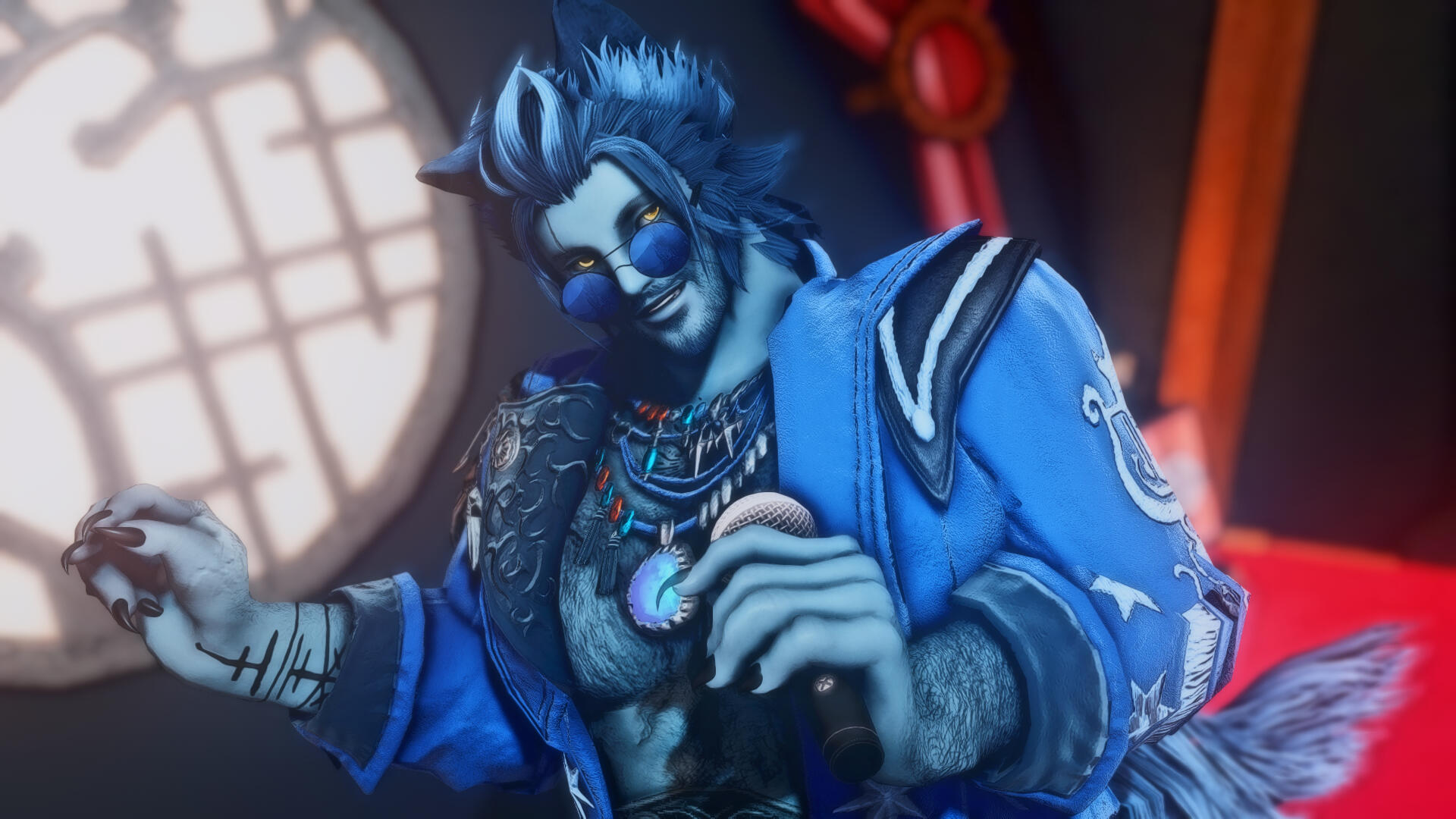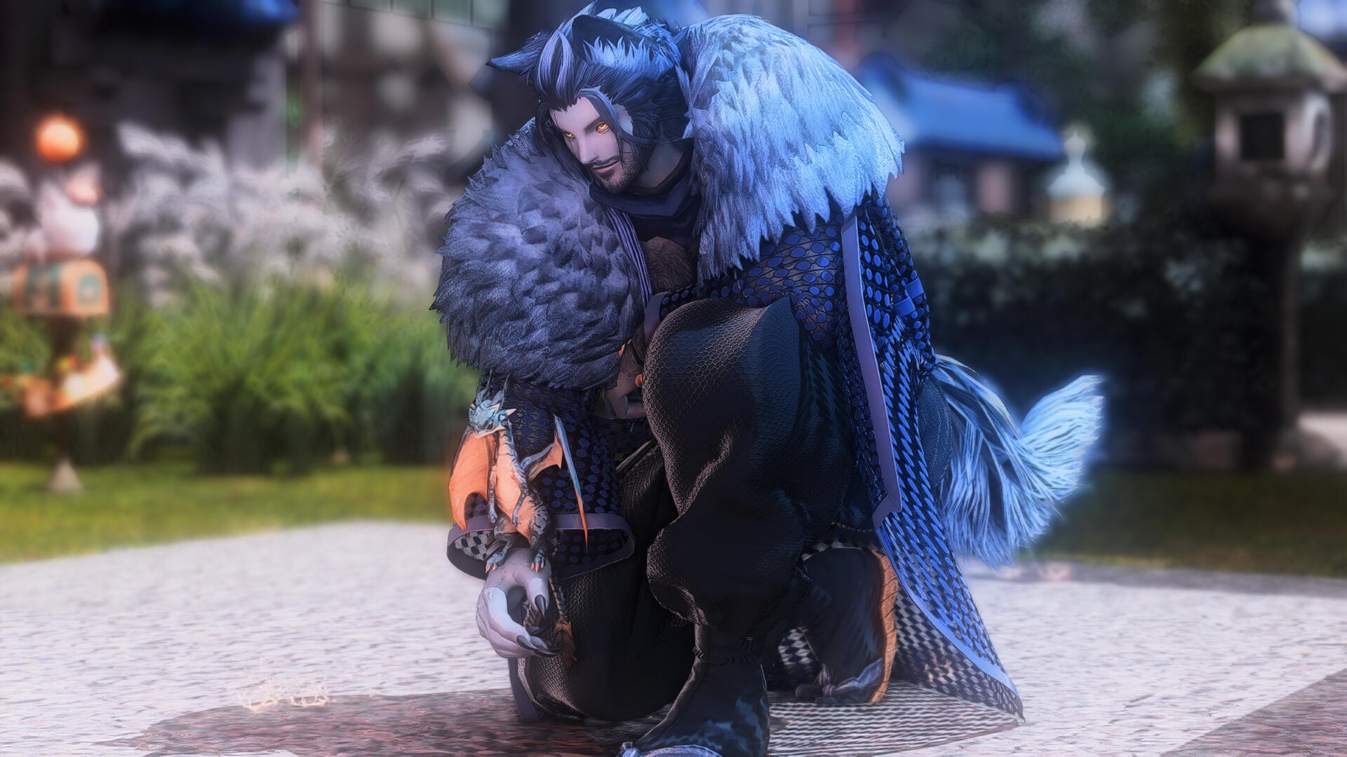 ༺ SOCIAL BUTTERFLY: Given his jovial and friendly nature, if all else fails, he's very easy to approach to just start a conversation with. One would find Tetsuro most present in Hingashi / Othard, though he does tend to travel a lot so it's not difficult to catch him outside of the region. Posters of his face from a hingan band known as 'Y☆KAI' is all ove Kugane.