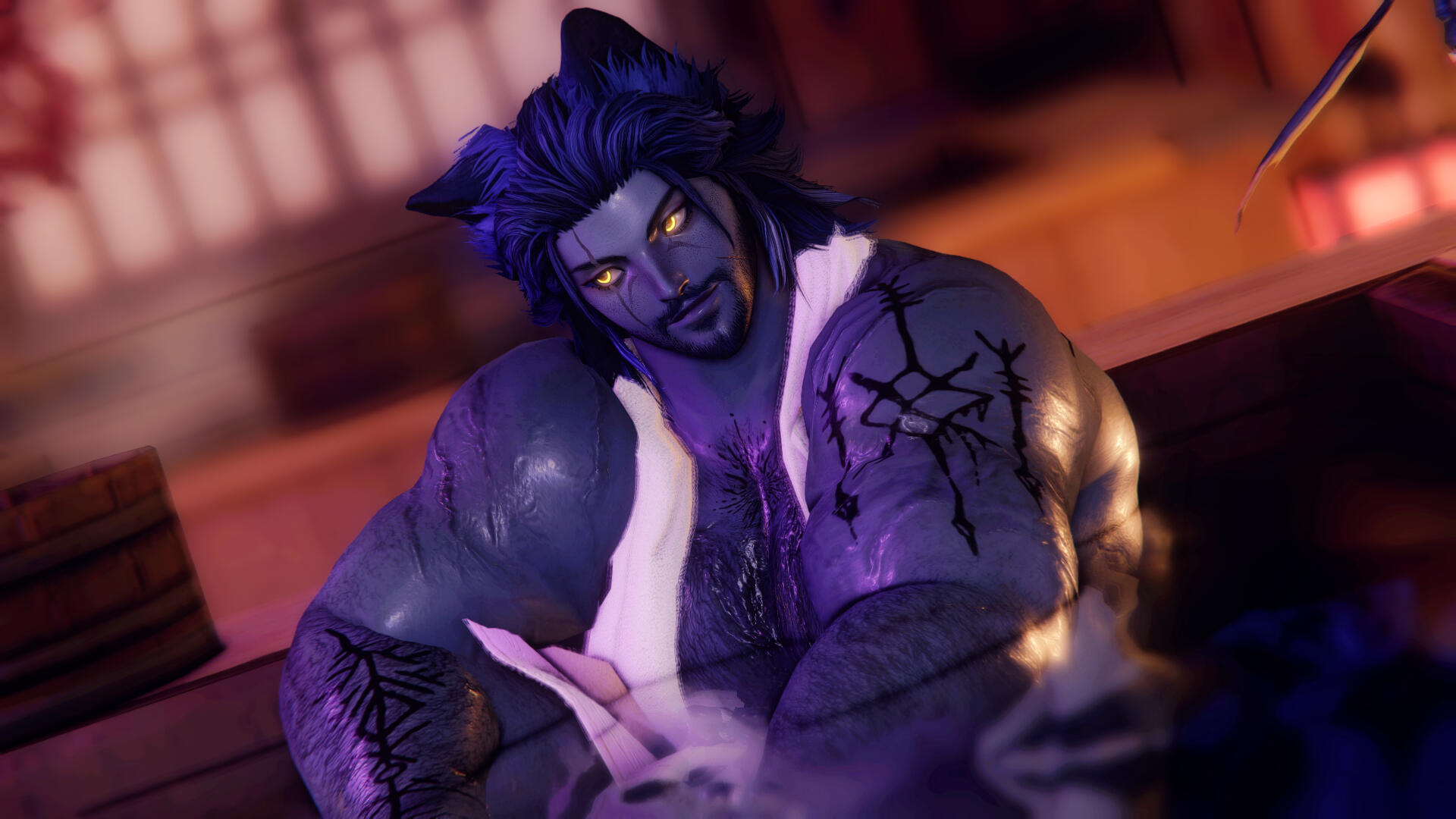 ༺ body structure: 6'7" // Beefy build, leaning into chubby in places, hair especially everywhere.